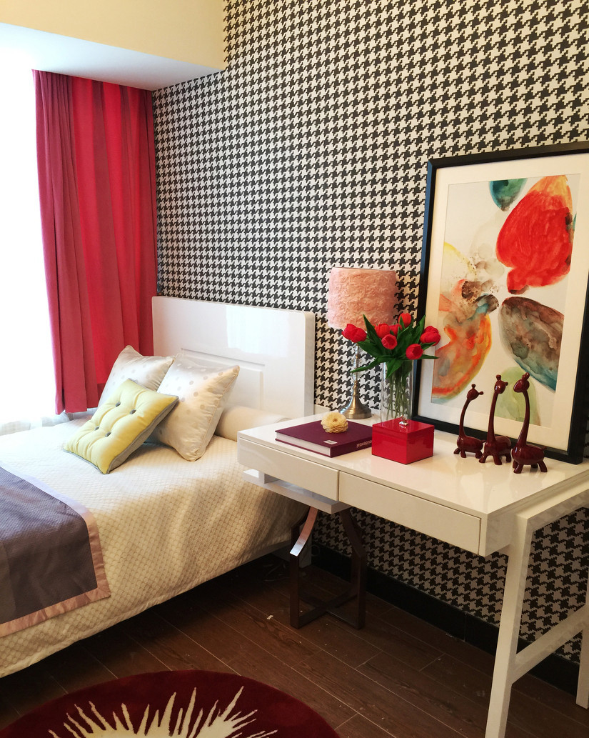 本案的人物定位是80后新年輕人 ,設(shè)計師把貴族的這種生活方式融入到本次方案, 用勃艮第酒紅色去詮釋這一切。去彌補客餐廳無光的這一缺陷、取巧化拙。讓業(yè)主第一眼就能感受到別樣的濃厚異國風(fēng)情 “搖曳的燭光下,搖著紅酒歡快的跳著探戈 ”整體洋溢的都是幸福感。