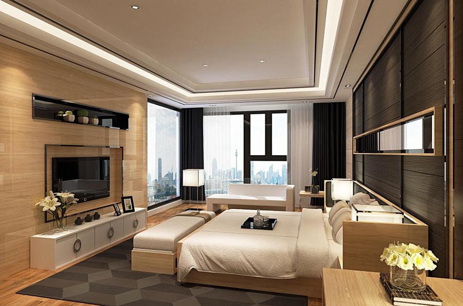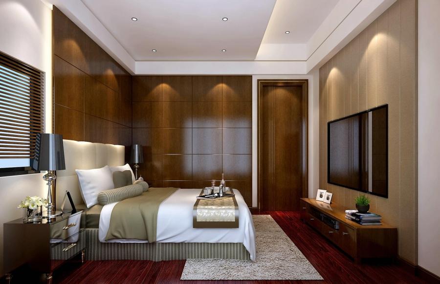 中式簡約估計是很多人心目中的選擇,大氣沉穩(wěn)的棕色木紋讓整間臥室的氣息內(nèi)斂,非常適合長輩們居住。