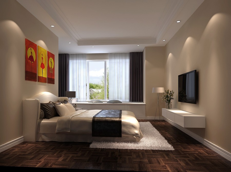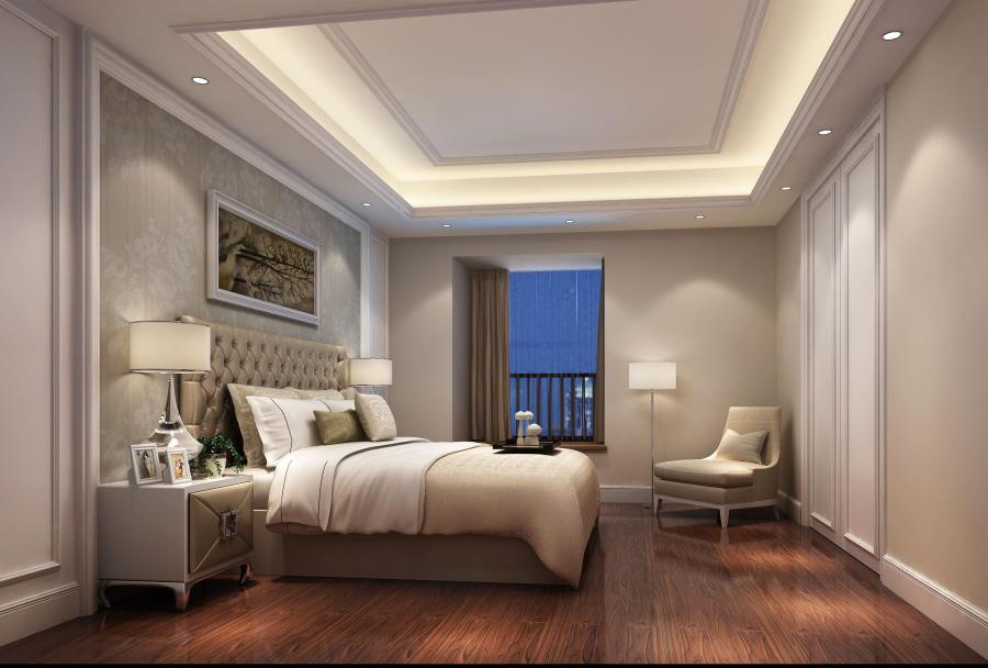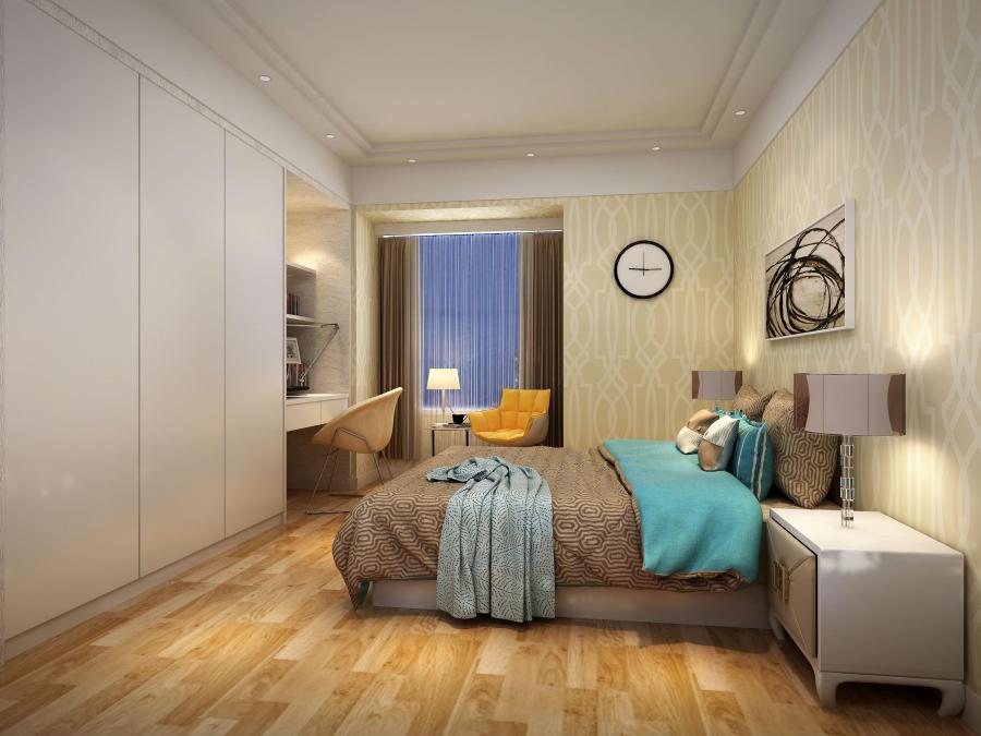 這款臥室走的也是溫馨的暖色調(diào)風格,墻角設置的書桌和休息空間為這個臥室增添了更多的功能,讓主人在這間臥室里可以做更多的事情,盡享一片寧靜空間。