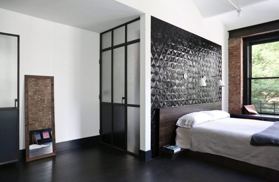 臥室保留了原先墻面上的大量窗戶,良好的采光讓黑色調(diào)也不顯壓抑。