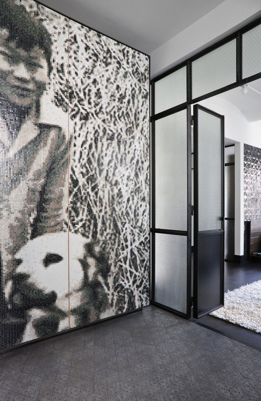 裸露的紅磚,柔滑的黑色木質(zhì)地板,黑色皮革沙發(fā),巨型裝飾畫,展現(xiàn)獨有的型格氛圍。