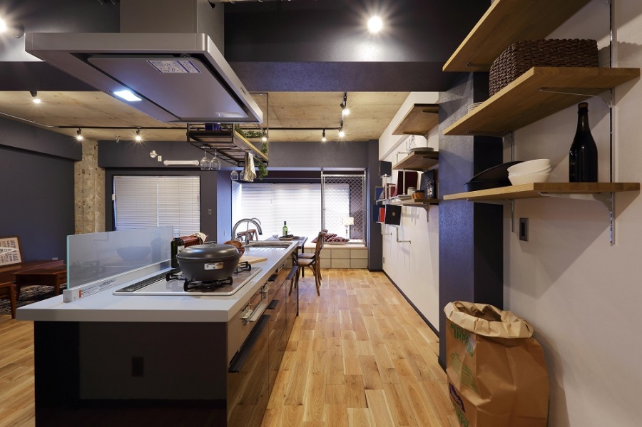封閉而獨(dú)立的廚房改造成面對(duì)面式的中島,并俯瞰客廳。