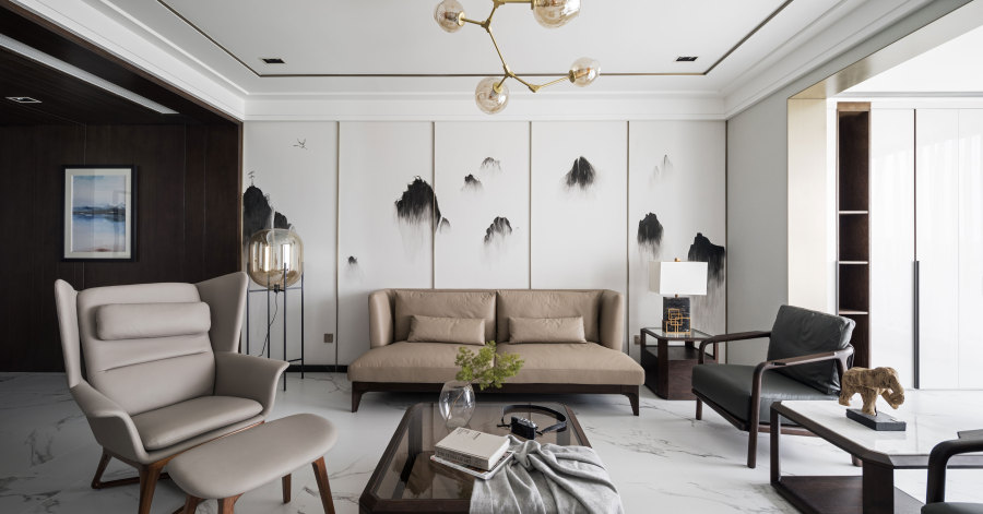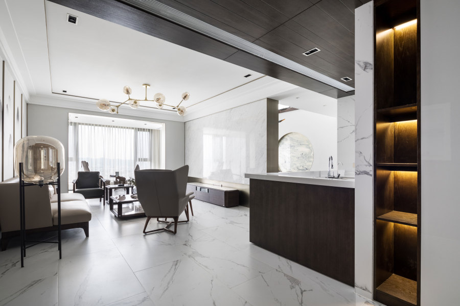 • 本案設(shè)計(jì)以富有內(nèi)涵的新中式風(fēng)格為主來進(jìn)行全面考慮。在總體布局方面盡量滿足業(yè)主生活上的需求,以橡木、墻紙、石材為主要裝修材料,營造一種互動(dòng)、溫馨、輕松的現(xiàn)代家庭生活氛圍。大量運(yùn)用了橡木深色開放漆飾面,與灰白墻紙相結(jié)合,整體表現(xiàn)出一種符合業(yè)主的沉穩(wěn)氣質(zhì)。 基本的設(shè)計(jì)理念為:空間的利用性,生活的溫馨性,設(shè)計(jì)的獨(dú)特性。