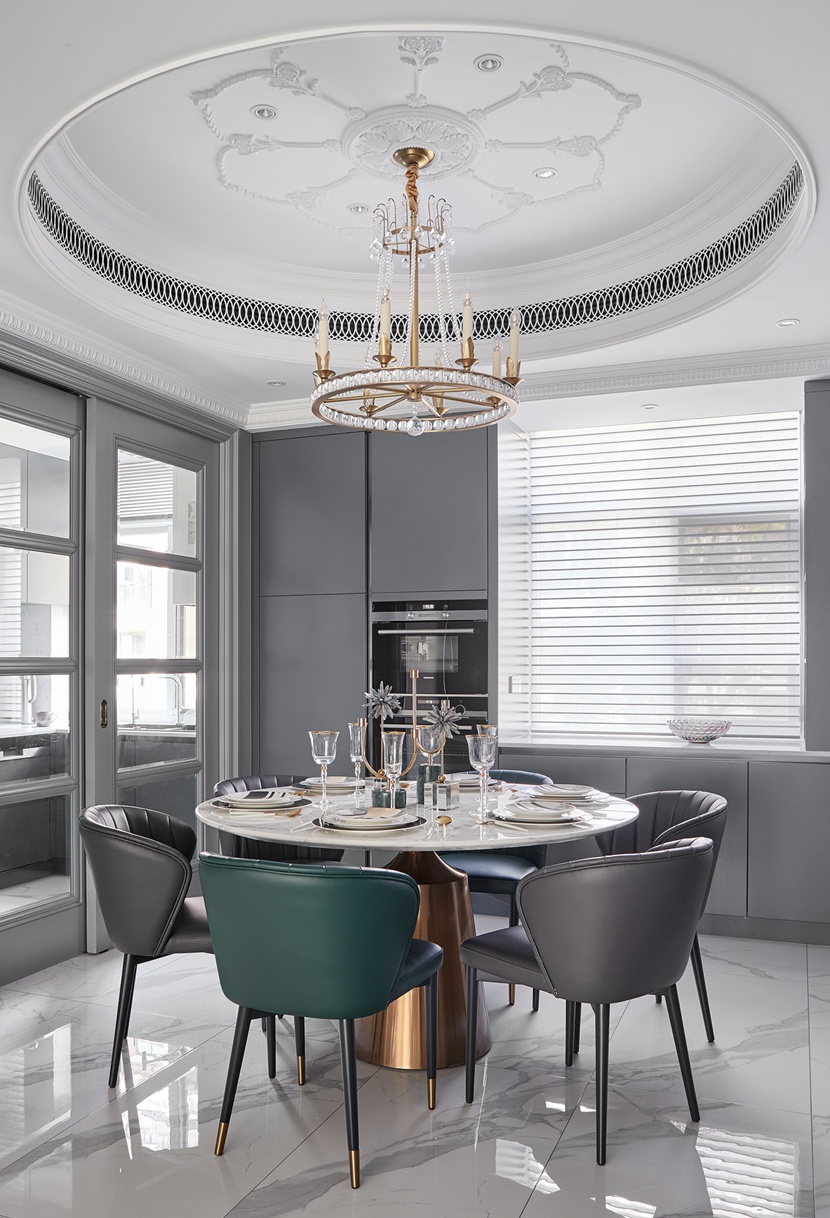 這次設(shè)計自己的家,首先要擺脫作為設(shè)計師喜歡把什么好的設(shè)計風(fēng)格、設(shè)計元素都往自己家搬的詬病,又出于自己平時設(shè)計工作的思維意識,如何把法式雕花、線條的古典感與現(xiàn)代家居、布藝的時尚感相融合、碰撞,從而營造一種兼顧歷史與文化的當(dāng)代人生活環(huán)境與氛圍,逼其張揚(yáng),取其低調(diào),表其內(nèi)涵,但又極具品質(zhì)感的家的想法由此而生,如此舒適、愜意的生活……