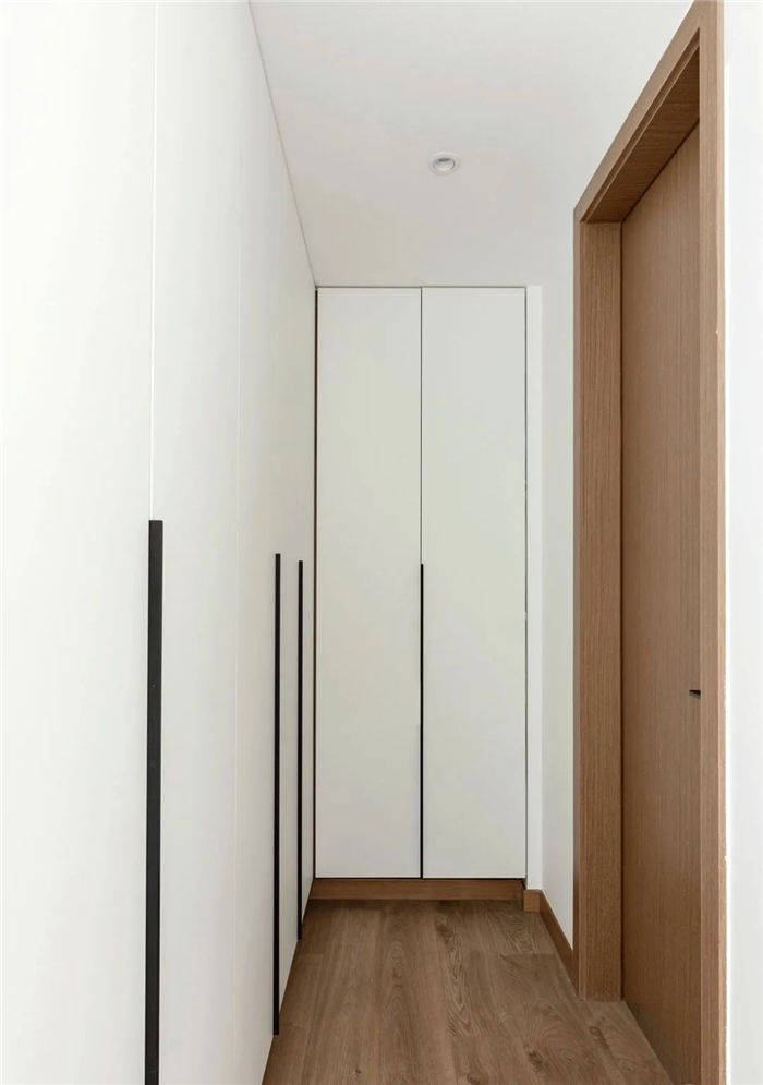 主臥有衣帽間,與玄關(guān)柜的打造是同一手法,簡(jiǎn)潔大氣。