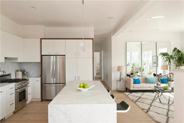 3、在裝修開始之前,就應(yīng)該最大限度的減少開放式廚房的缺陷。所以在必要的地方要多投入一些資金,比如購(gòu)買無噪音的家用電器、使用方便清潔的家居建材。