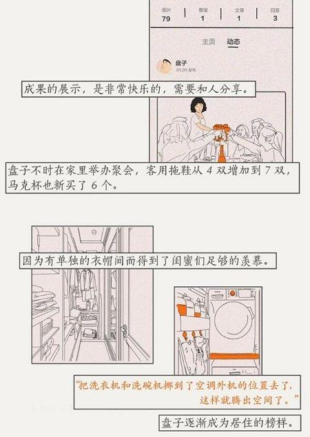 好好住APP聯(lián)合畫手匡扶搖推出長圖漫畫《她所摸索的生活》,也是和家居改造相關(guān)的主題,故事的時間線拉得很長,描述一個大塊頭女生盤子的成長經(jīng)歷。