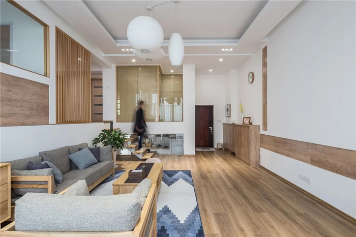 這是一套層高2.7米、90平緊湊套三室雙衛(wèi)的戶型,對(duì)于身高有著一米九幾的屋主,伸手就能夠著天花板的房子,層高成了最大的硬傷。除此之外,各房間的面積分配不能滿足屋主的功能需求,整體缺乏開闊感。設(shè)計(jì)師通過盡量不吊頂,以及靈活合理的功能布局,空間設(shè)計(jì)上盡量化整的設(shè)計(jì)手法,讓空間盡量顯高顯寬敞。