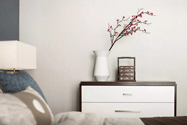 主臥的背景墻與客廳的屏風(fēng)呼應(yīng),淡雅棉麻田園風(fēng)。完全私屬空間,偶得幾處紅色,彰顯自由肆意的本心。枝頭鳥、海中浪、瓶中花,自然情趣悄然流露,人與自然和諧共生。