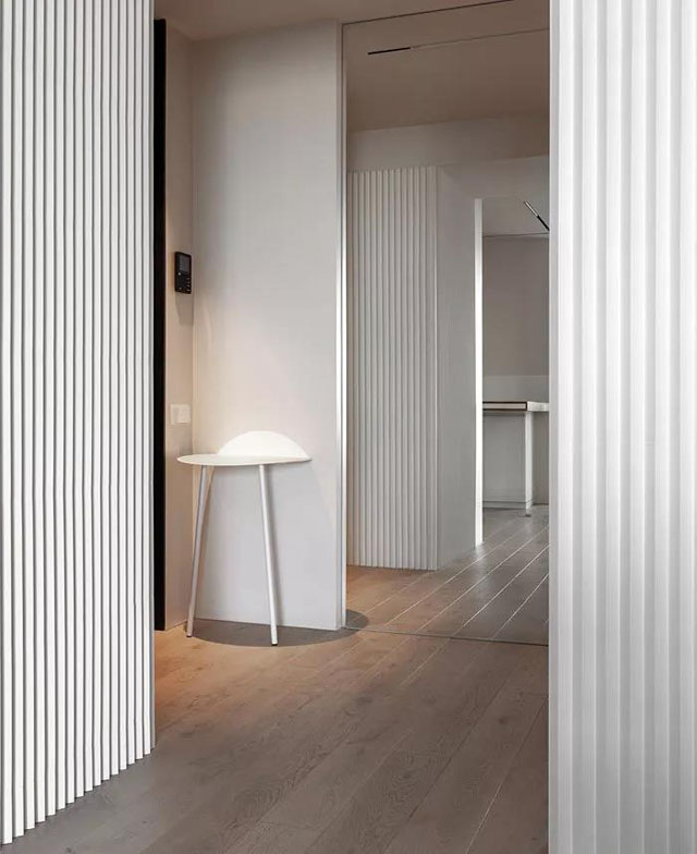 最初,住宅充滿了各種不必要的門,黑暗的角落,并被中間的厚墻隔開。建筑師決定拆除所有的墻壁并從頭開始重新組裝新的地方,與開發(fā)商提供的初始方案相去甚遠(yuǎn)。