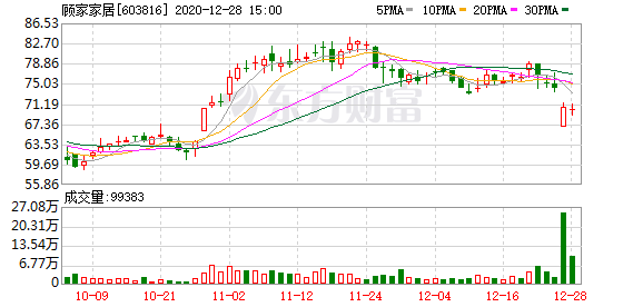 •  12月25日,顧家家居(603816)開盤報(bào)66.66元,距離跌停只差1分錢。截至收盤,跌幅收窄,報(bào)70.64元/股,跌4.62%。