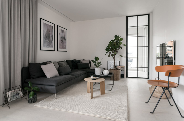 首先想象自己在一個(gè)布滿白墻的空客廳里面,怎么布置才能將其填滿,充滿北歐風(fēng)呢?