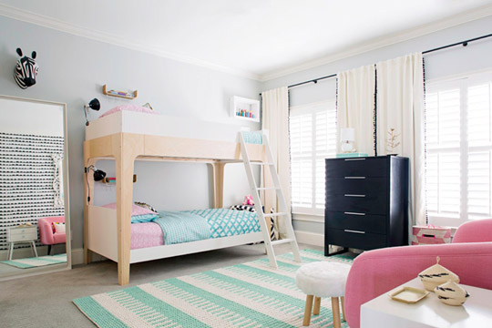 粉色系依然是兒童的最愛。從沙發(fā)到床墊,在白色為主色調(diào)的前提下,配上淺淺的綠色,穿插悅目的粉色,陽光可以透過落地窗灑進房間,顯得明亮而充滿朝氣。