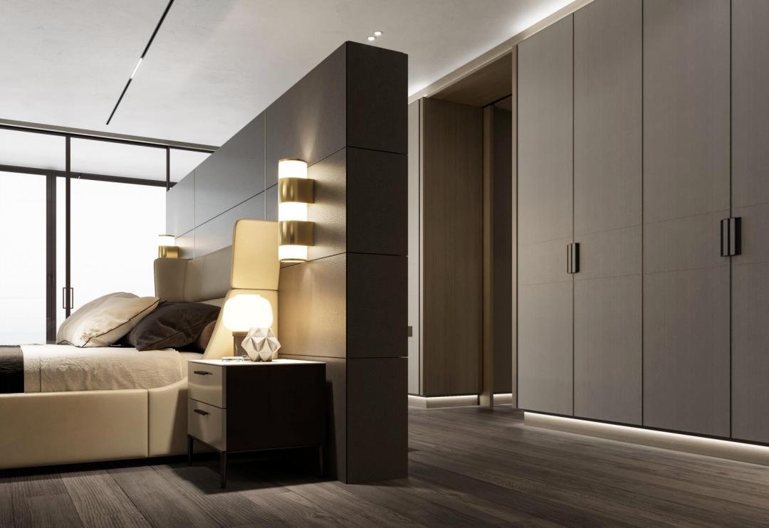 其中有一些微創(chuàng)新,力圖讓高定空間更能滿足個(gè)性化需求,比如可靈活搭配設(shè)計(jì)的背景墻和衣帽柜;各種體現(xiàn)自然元素的軟裝;還有木材、石料、貼皮、金屬等多樣化材質(zhì)組合。