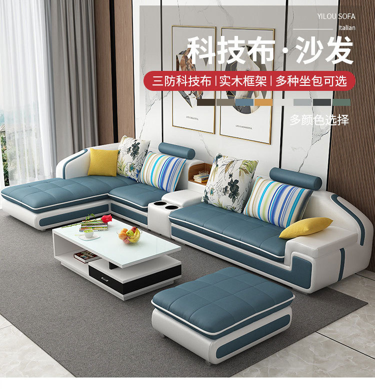 • 客廳簡約科技布藝沙發(fā)中小戶型轉角沙發(fā)   2650元/套