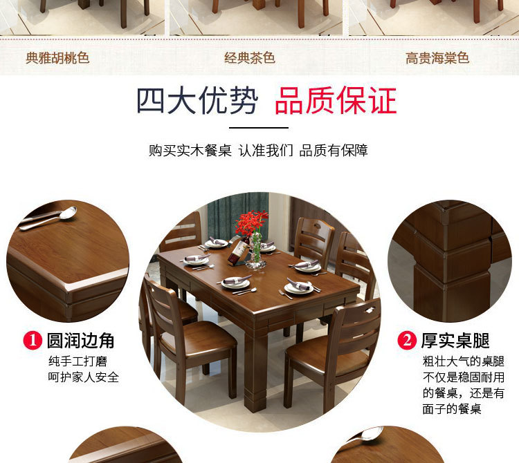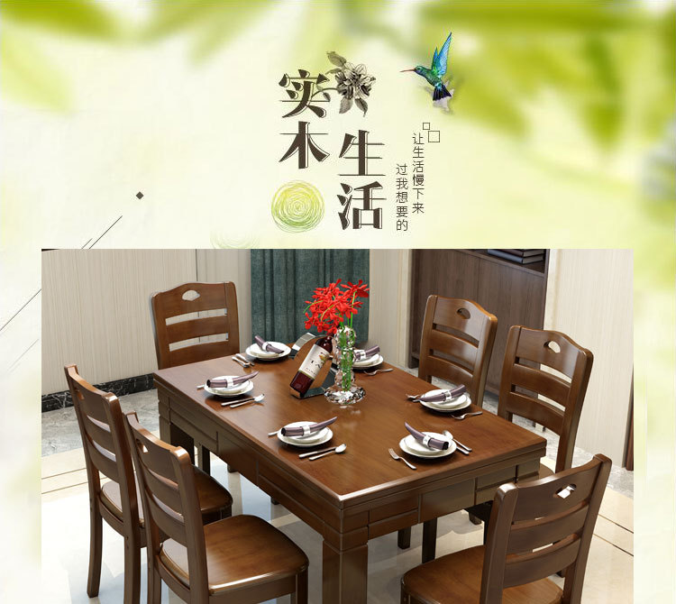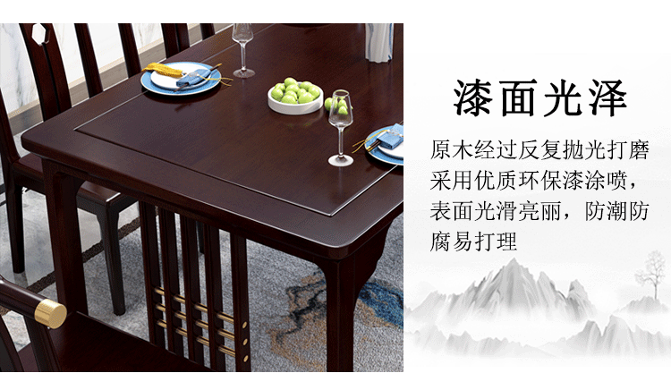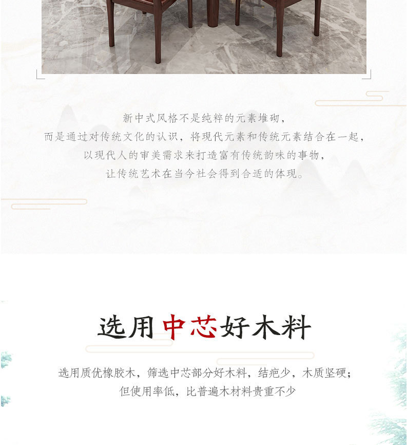 • 新中式橡膠木全實(shí)木餐桌椅組合一桌四椅   3720元/套