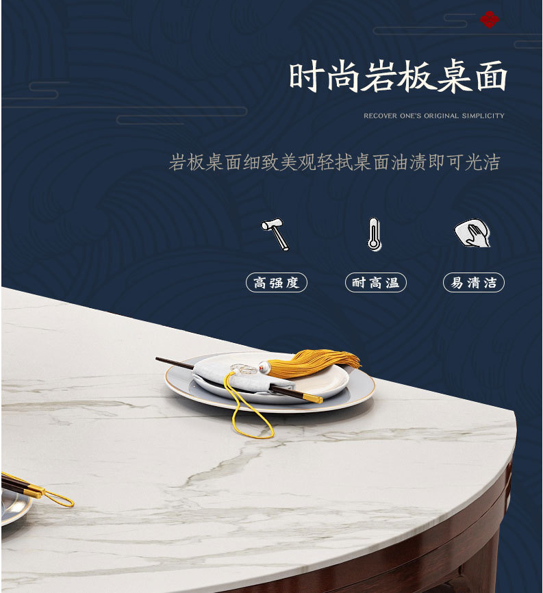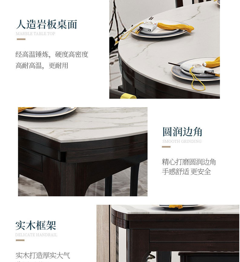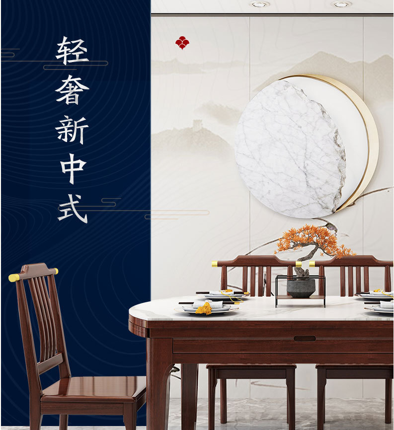 > 新中式家具 巖板長方形圓形餐桌椅