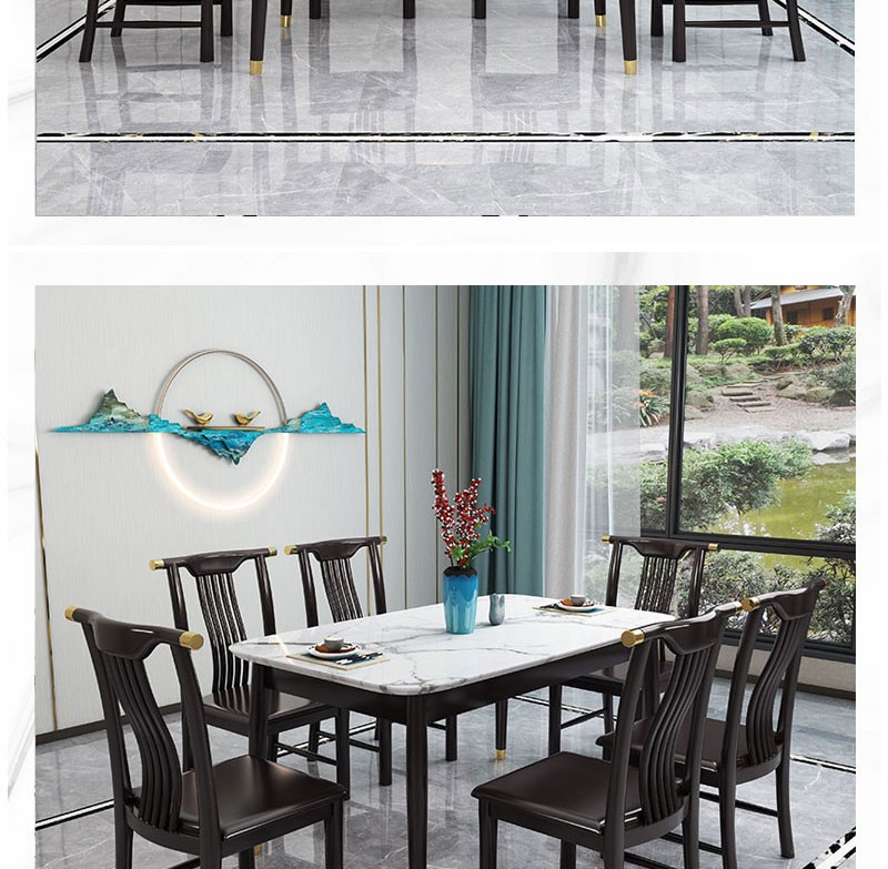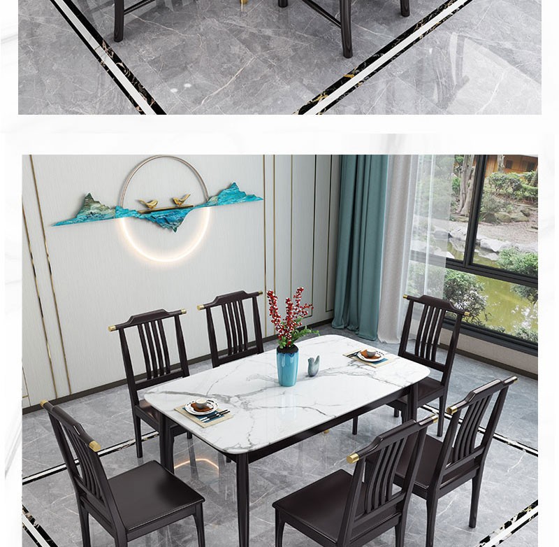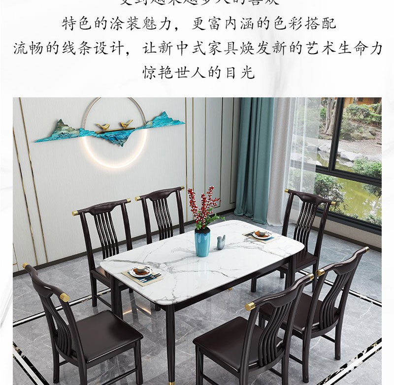 • 新中式家具 巖板餐桌椅組合 簡約現(xiàn)代長方形餐桌  2868元/套