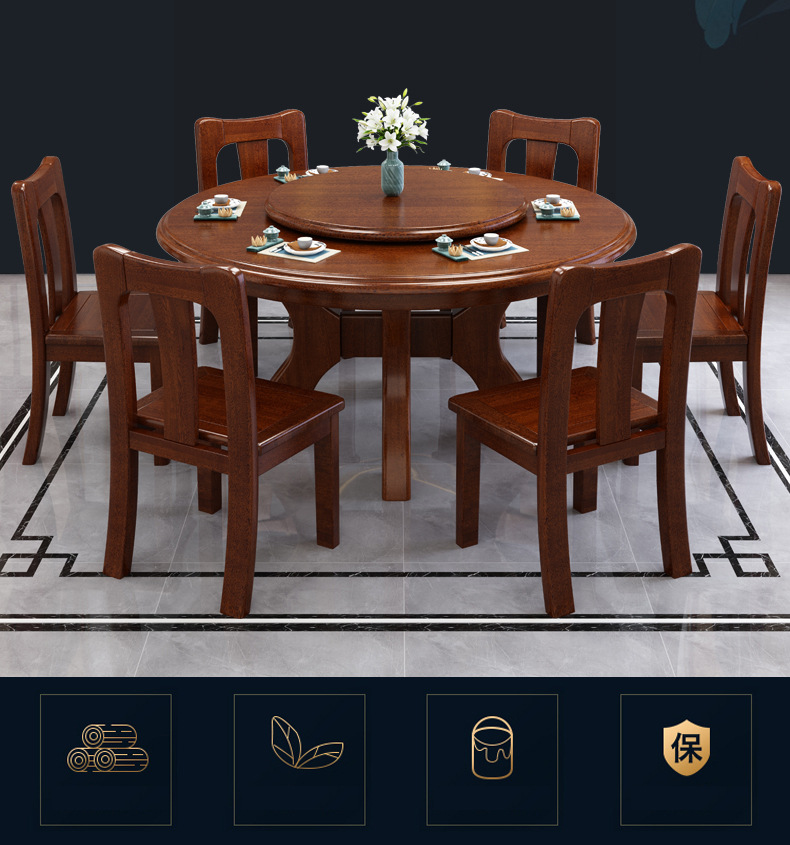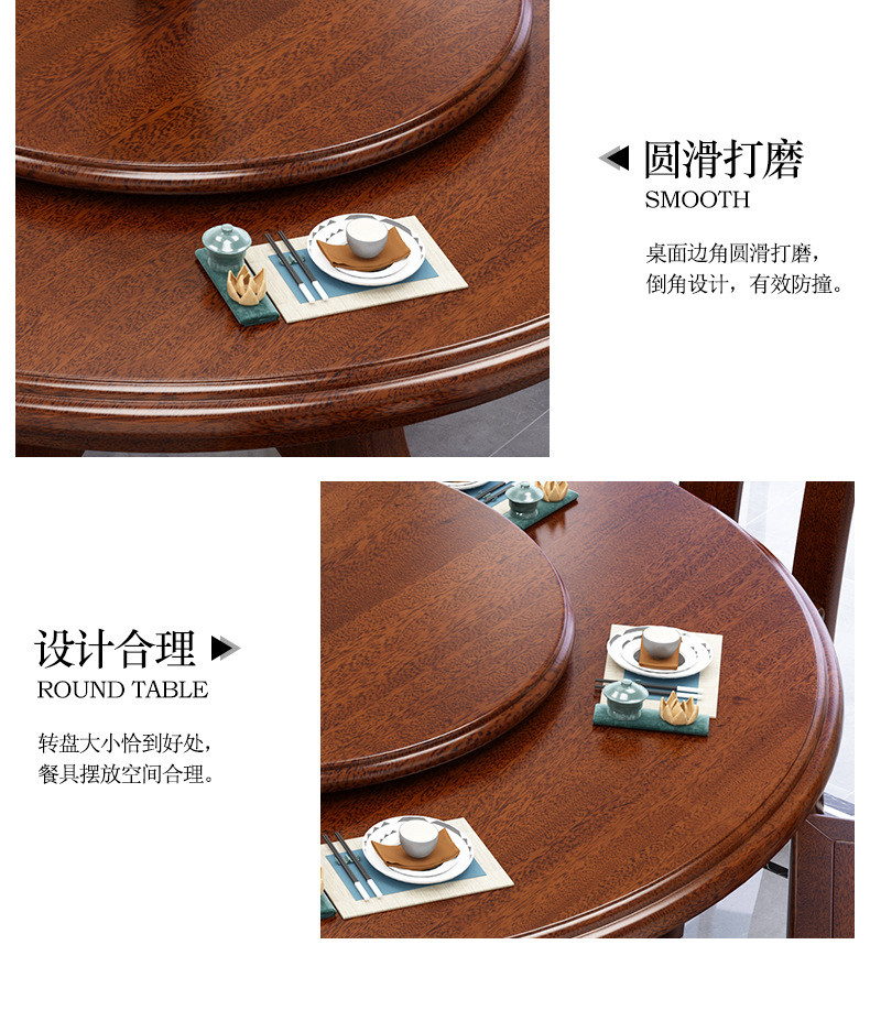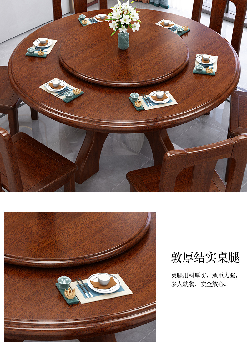 > 新中式家具 胡桃木餐桌椅組合 四人八人吃飯桌子帶轉(zhuǎn)盤