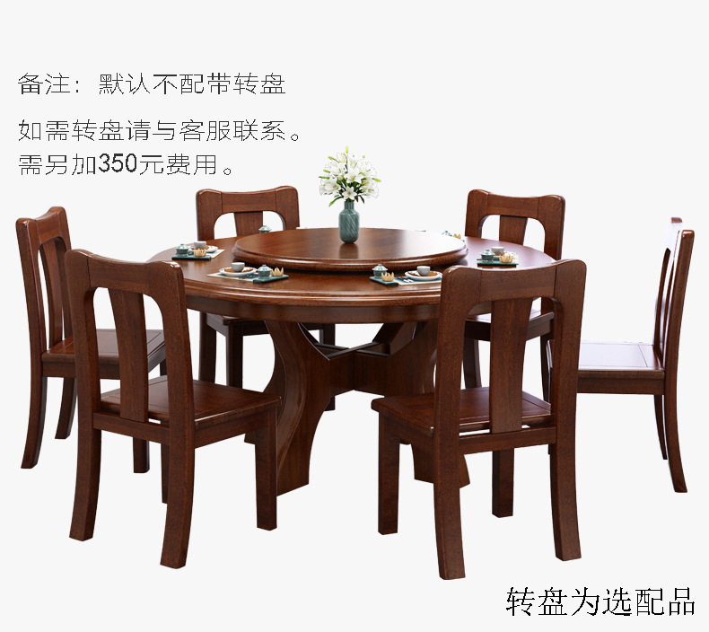 新中式胡桃木餐桌椅組合四人八人吃飯桌子帶轉(zhuǎn)盤  5784元/套