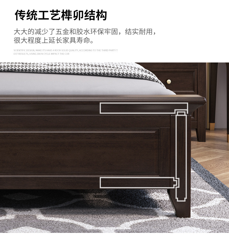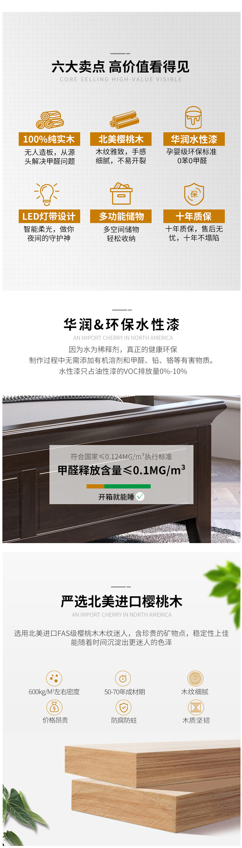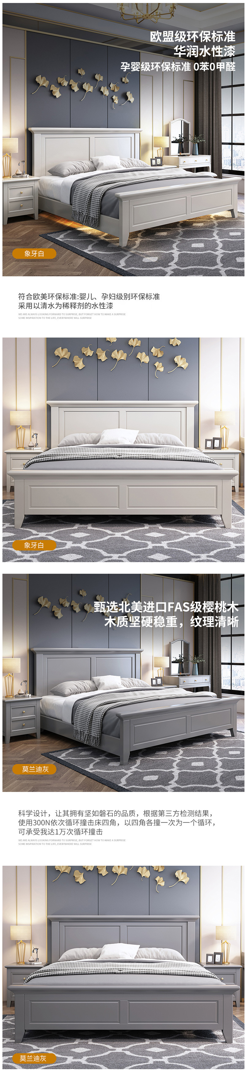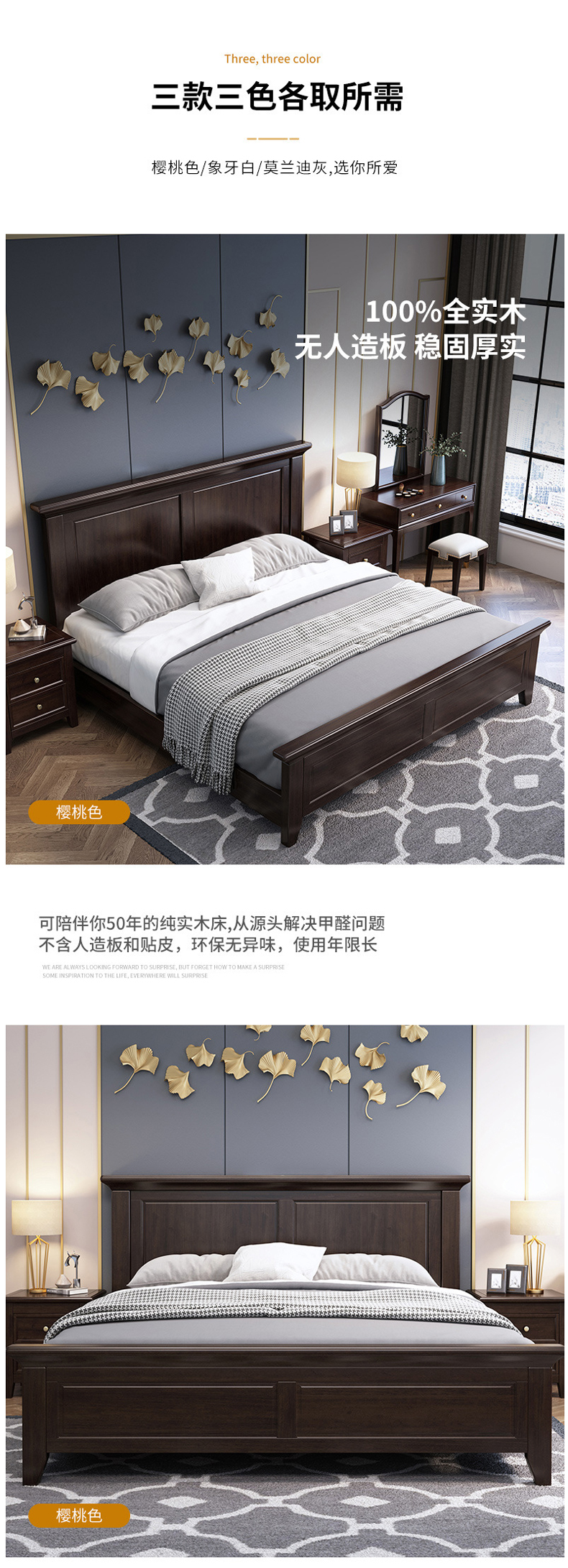 > 美式家具 輕奢櫻桃木實(shí)木床 1.8米雙人床