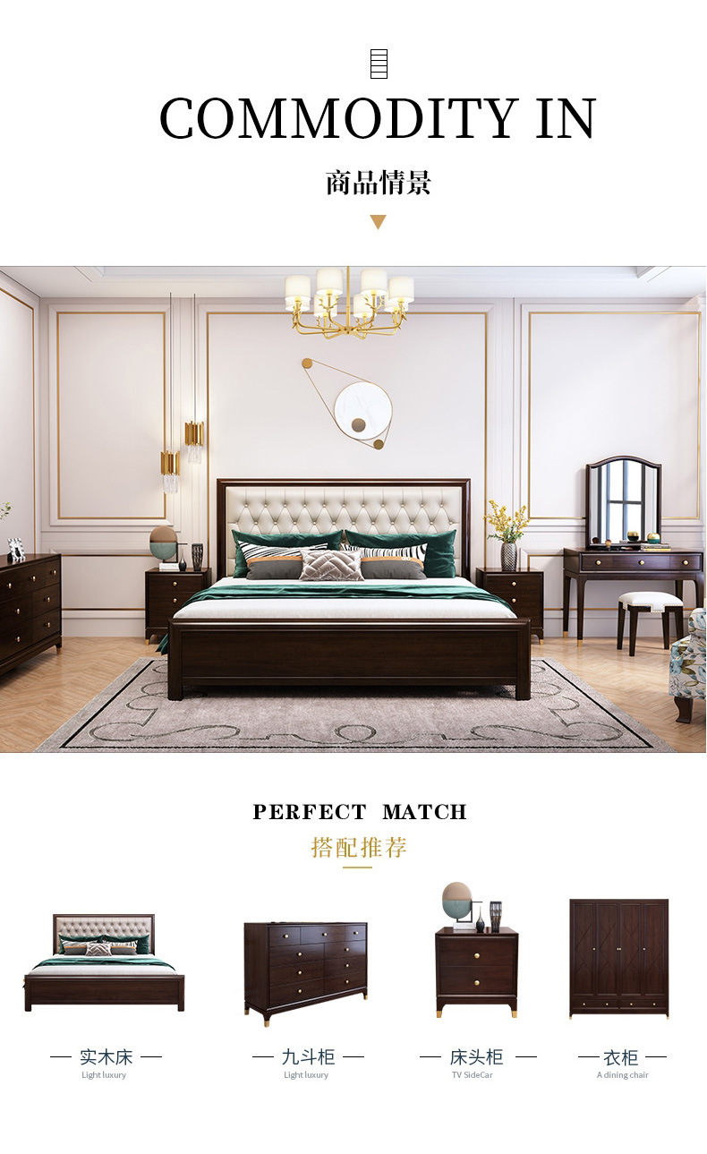 概述:美式輕奢實(shí)木床1.8米雙人床1.5米皮藝軟包婚床簡約櫻桃木主臥家具;型號(hào):M901床;結(jié)構(gòu):框架結(jié)構(gòu);材質(zhì):櫻桃木......