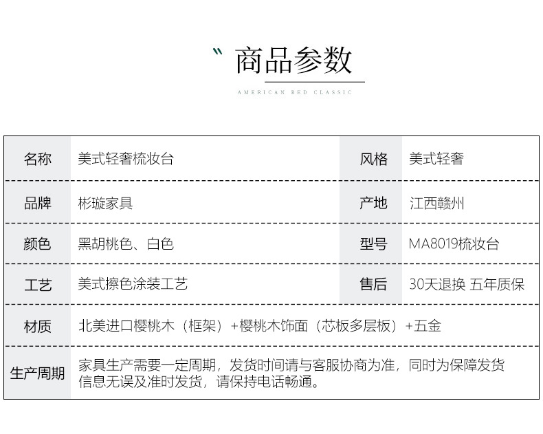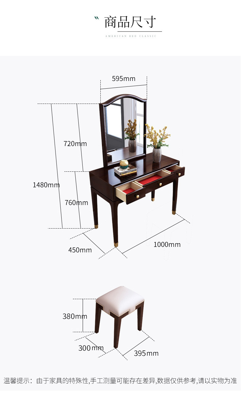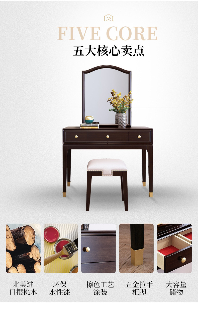 • 美式家具 輕奢櫻桃木 實(shí)木梳妝臺(tái)  3224元/套