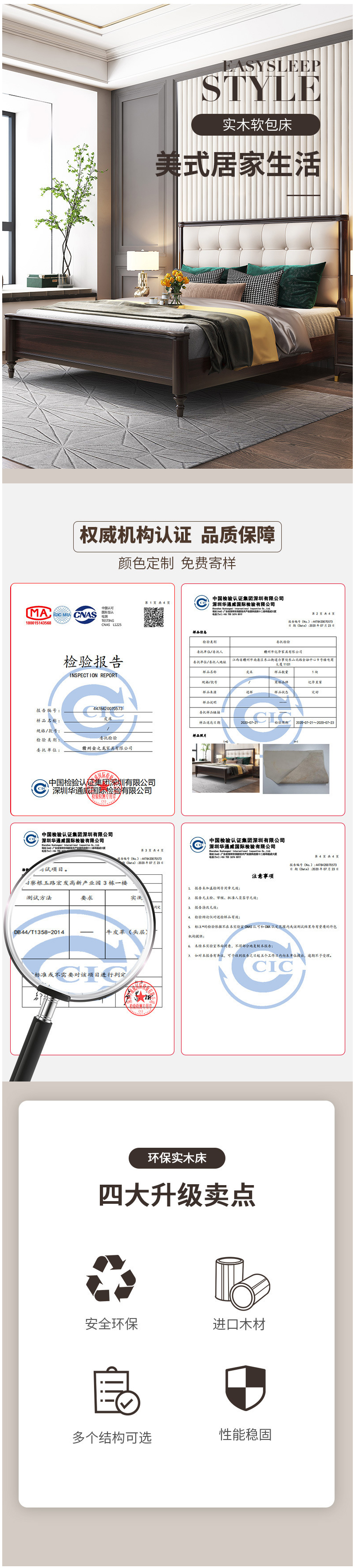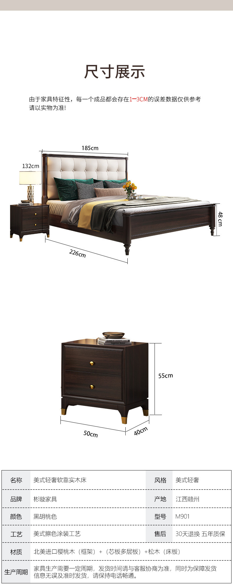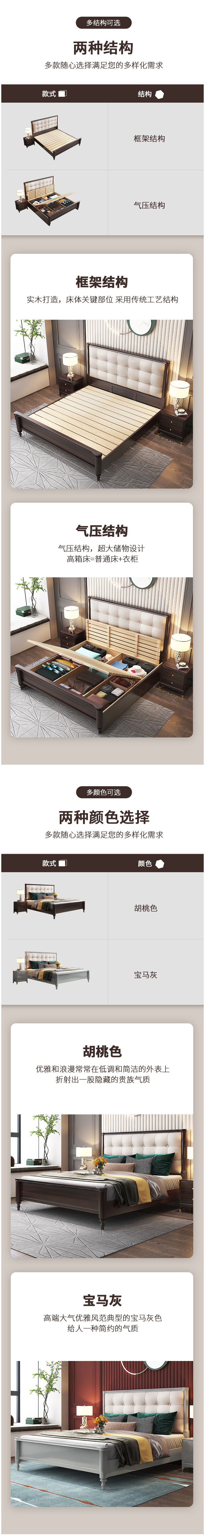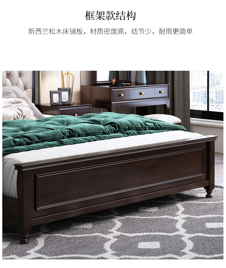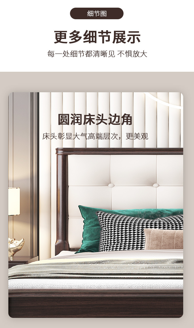 概述:美式輕奢實(shí)木床1.8米雙人簡約主臥1.5婚床高箱儲物櫻桃木金箔家具;材質(zhì):櫻桃木;型號:MA8015;結(jié)構(gòu):框架結(jié)構(gòu)......