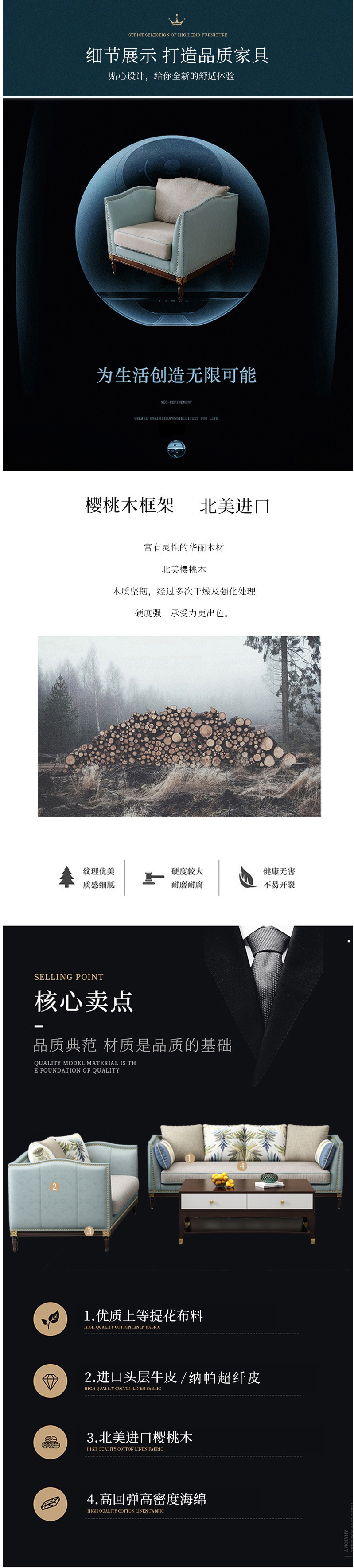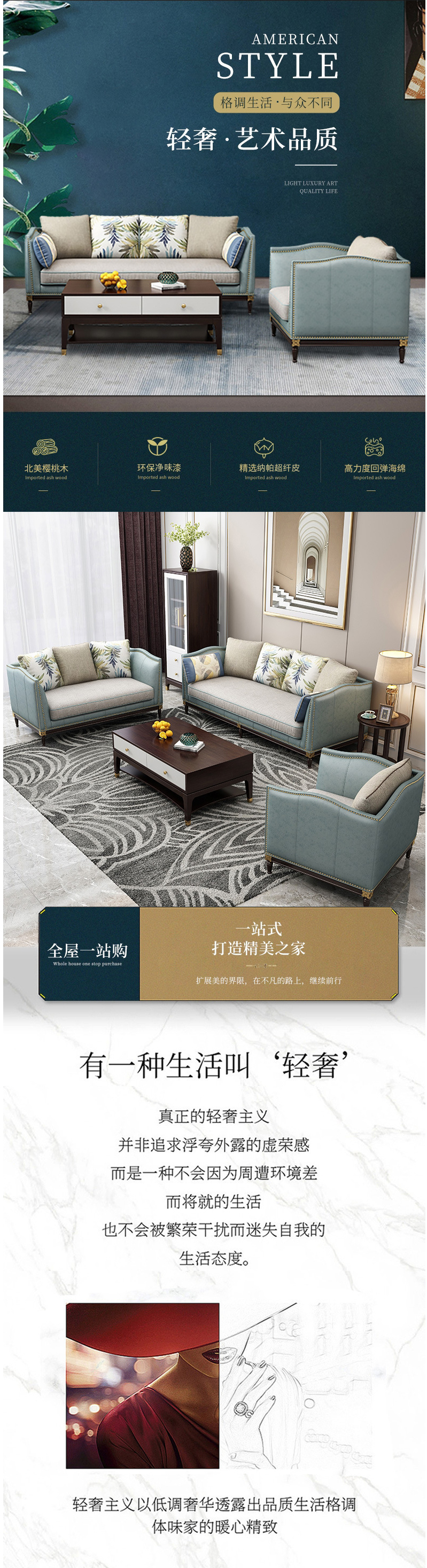 • 美式家具 輕奢沙發(fā) 現(xiàn)代小戶型頭層牛皮簡美風(fēng)格家具  13780元/套