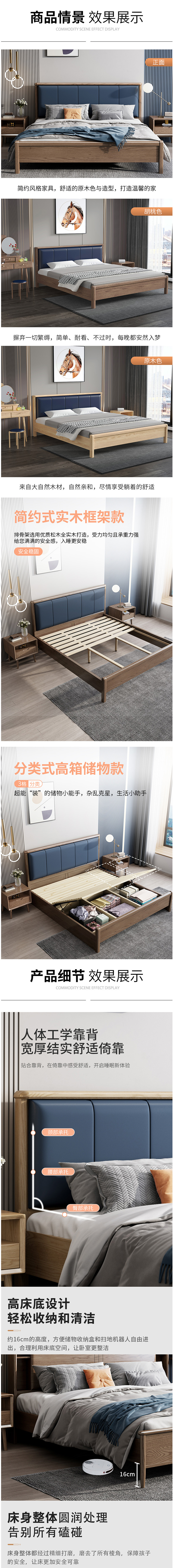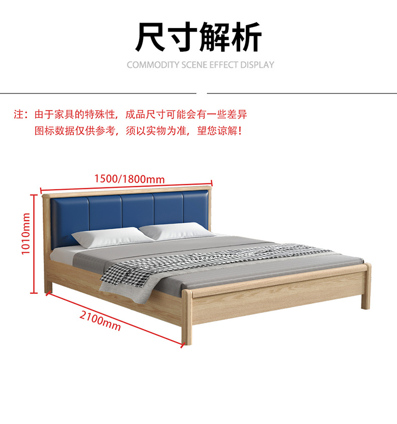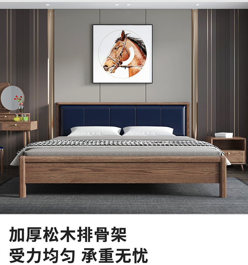 • 北歐白蠟?zāi)緦嵞敬铂F(xiàn)代簡約主臥1.8米雙人床  2769元/張
