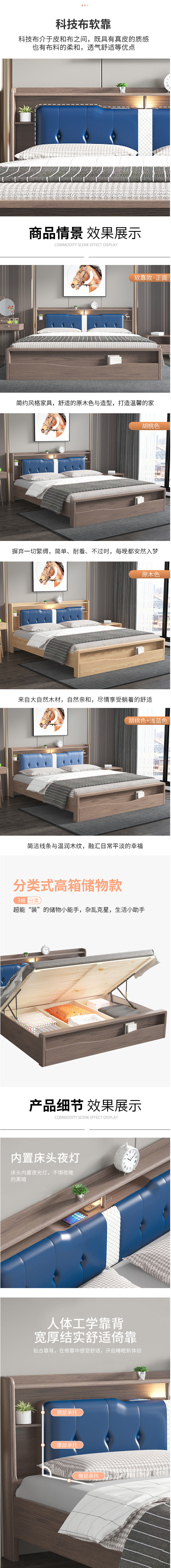 北歐全實木1.8米主臥現(xiàn)代簡約雙人軟靠輕奢婚床  2899元/張