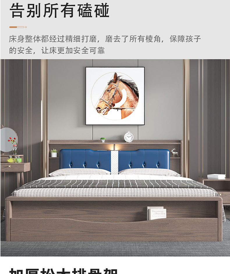 北歐家具 白蠟?zāi)救珜嵞?.8米主臥雙人軟靠輕奢婚床