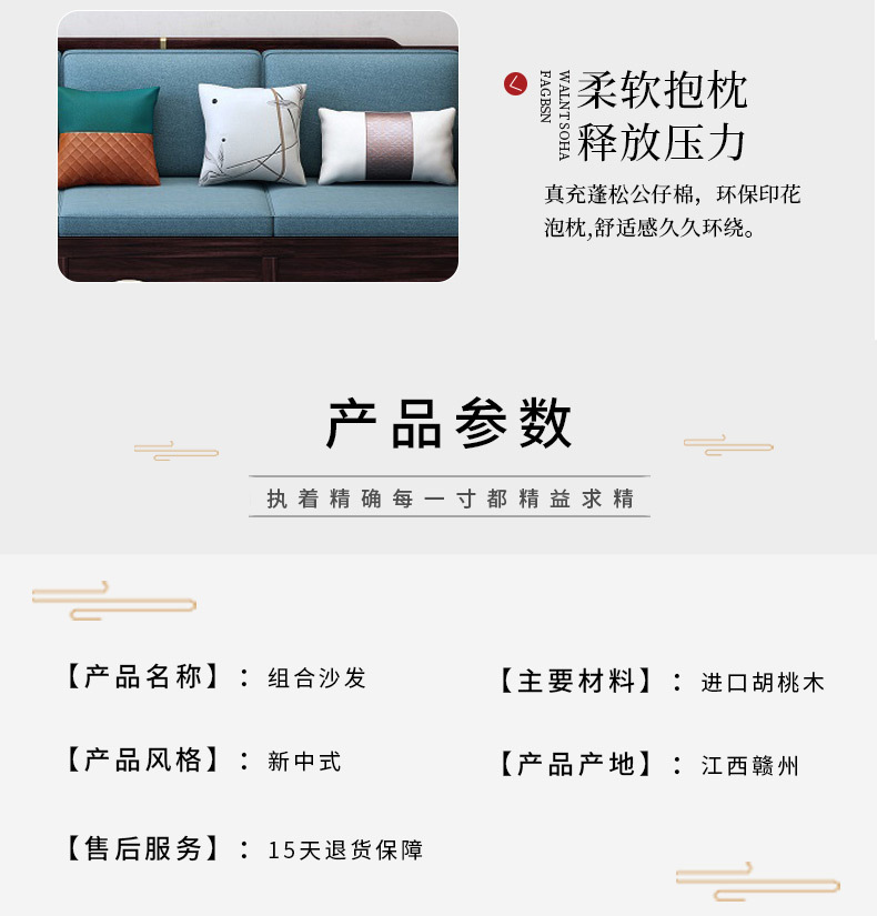 • 新中式家具 全實(shí)木布藝沙發(fā) 胡桃木質(zhì)組合沙發(fā)  6474元/套