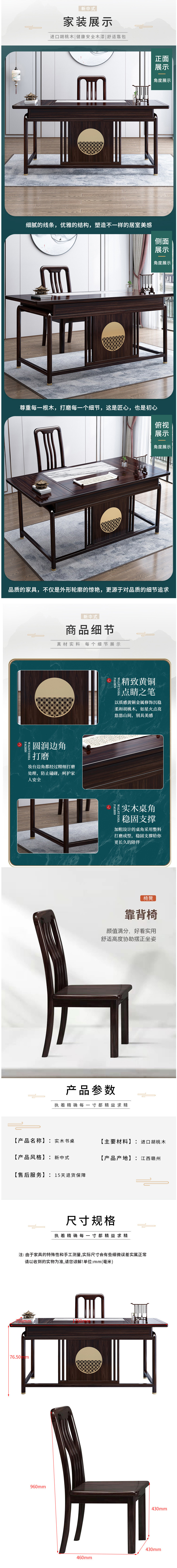 • 新中式家具 胡桃木實(shí)木書桌椅組合現(xiàn)代簡約辦公電腦帶抽屜桌子  3744元/套
