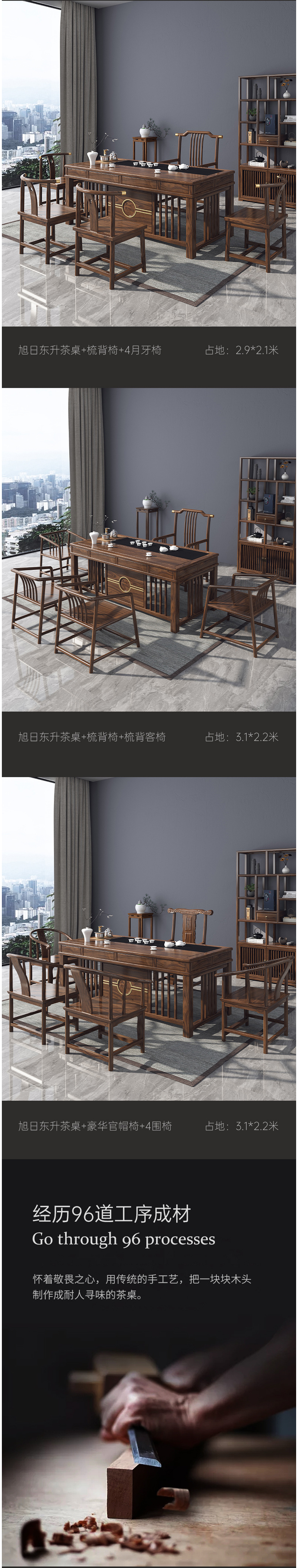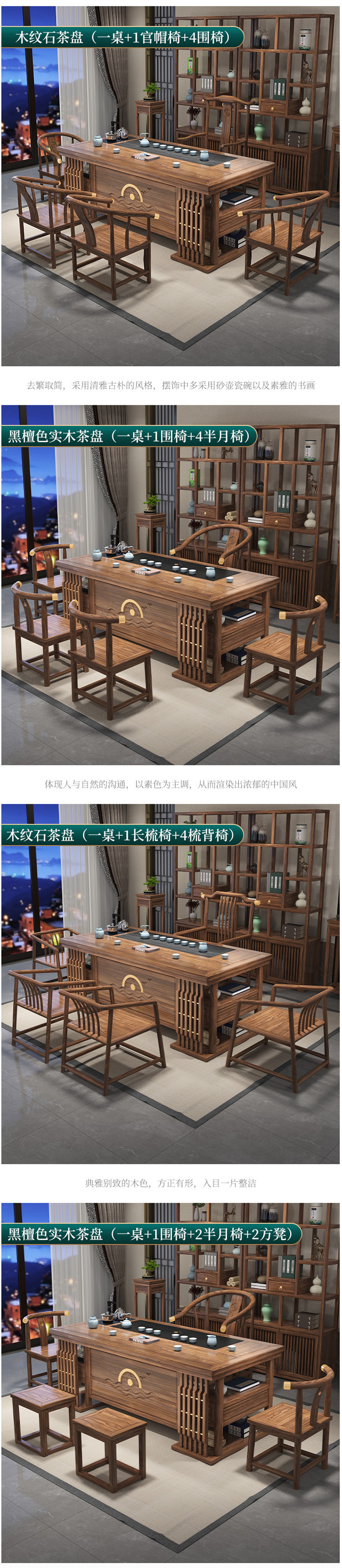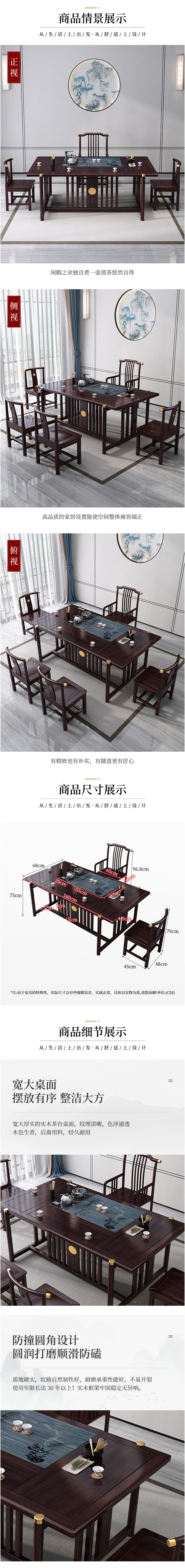 新中式家具 簡(jiǎn)約茶桌椅組合實(shí)木功夫茶幾茶具套裝  3770元/套