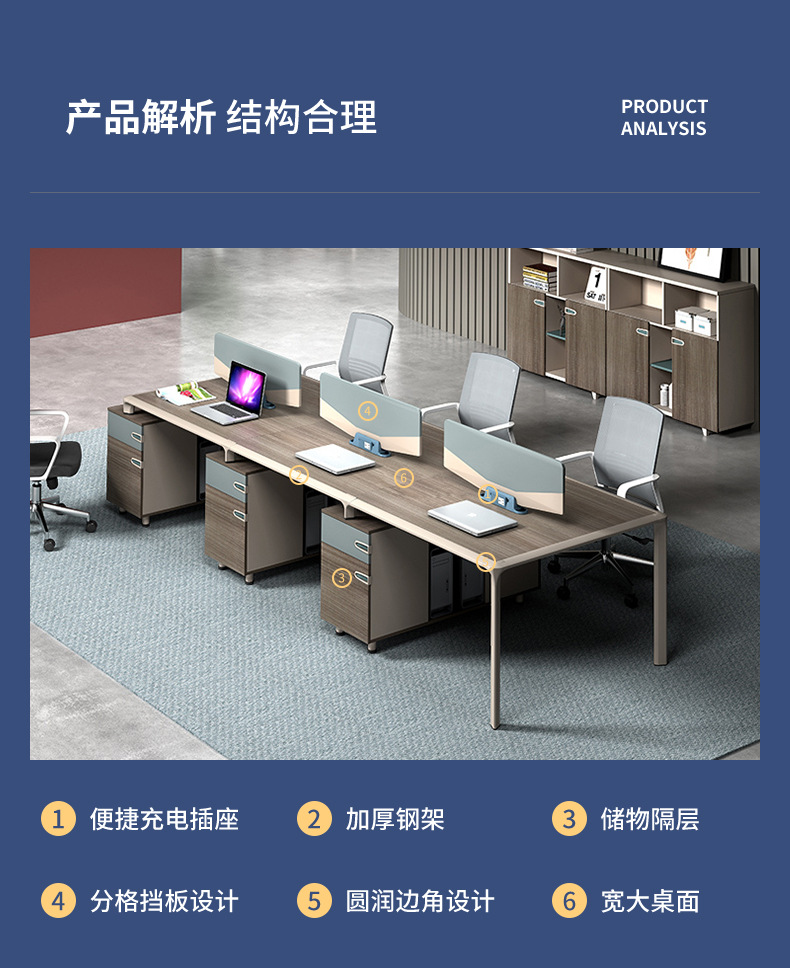 • 辦公家具 辦公室員工卡位 新款屏風(fēng)4人卡座 簡(jiǎn)約辦公桌椅組合   1560元起