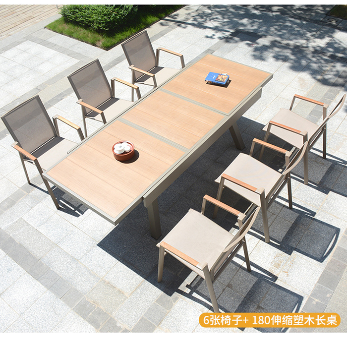 概述:戶外塑木桌椅庭院別墅酒店防腐木休閑餐桌椅室外露天陽臺桌椅組合;型號:003-1;材質(zhì):塑木;風(fēng)格:現(xiàn)代簡約......