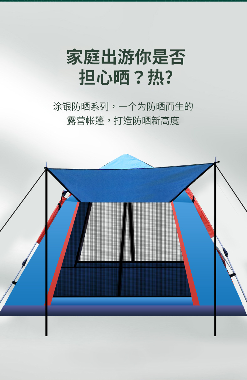 概述:帳篷戶外露營便攜式全自動5-8人折疊沙灘防曬棚野營用品裝備;帳篷結(jié)構(gòu):雙層帳;風(fēng)格功能:登山,野餐;撐桿:玻璃纖維桿;貨號:XY2209......