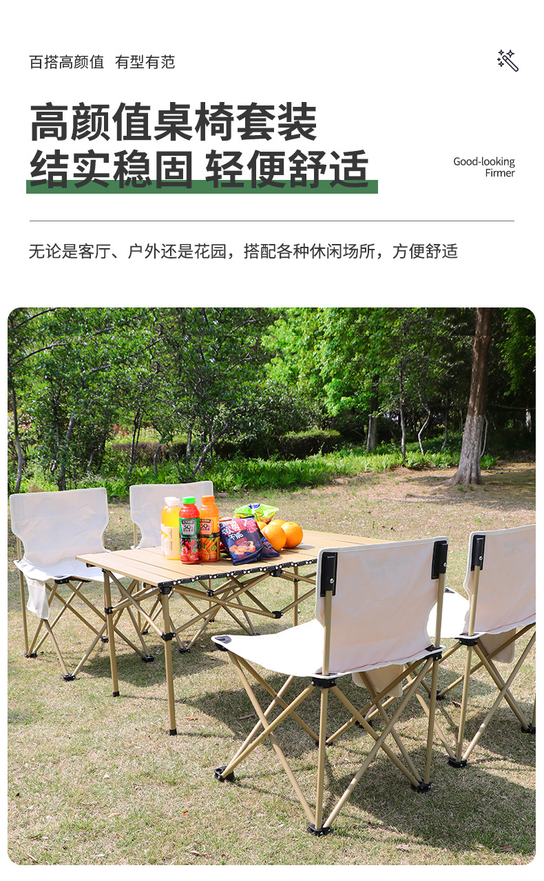 • 戶外餐桌椅套裝便攜式桌子鋁合金蛋卷桌露營折疊椅凳野營裝備  349元/套