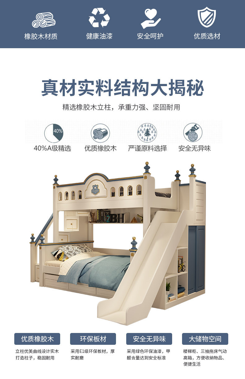 • 兒童家具 實木床高低子母床多功能儲物小戶型臥室兒童床;床:3874元起;三抽拖床:650元;梯柜:1690元;滑梯:1690元;