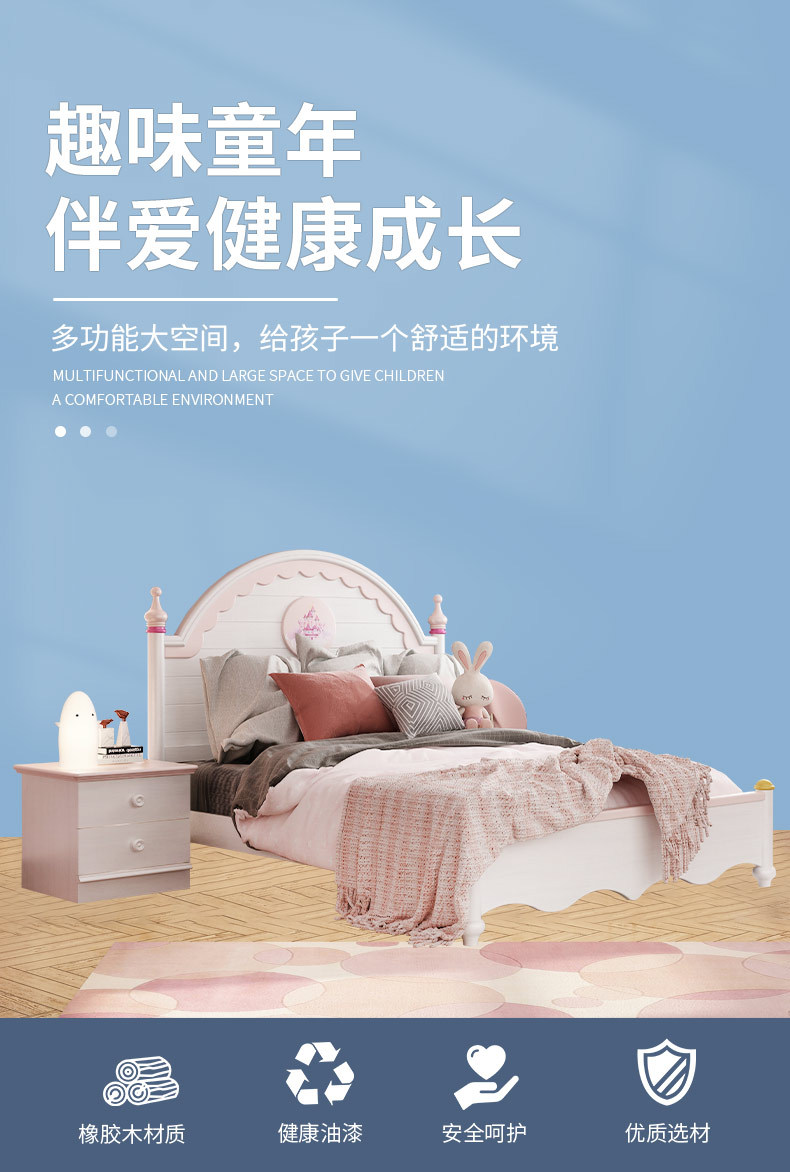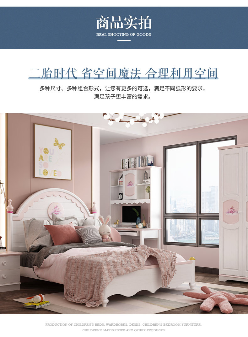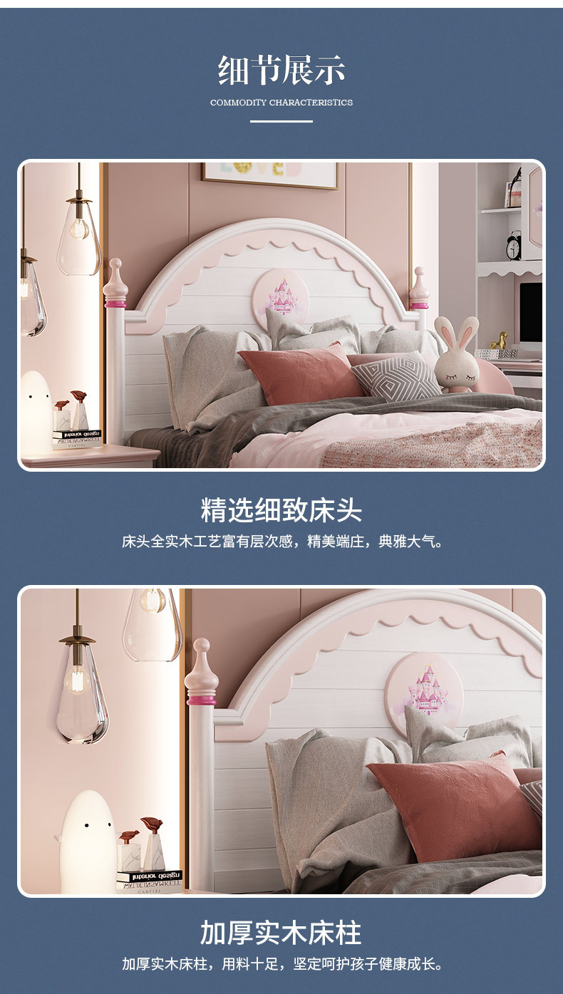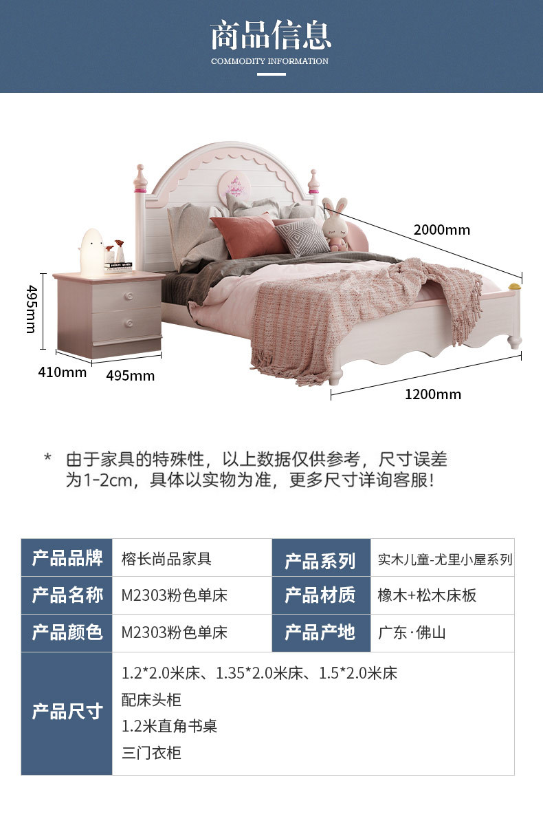 概述:兒童家具 現(xiàn)代簡約粉色女孩女生公主床框架單人床;型號:M2303#;材質(zhì):實木;風(fēng)格:現(xiàn)代簡約;尺寸:1200*2000,1350*2000,1500*2000,床頭柜,1.2米直角書桌,三門衣柜......