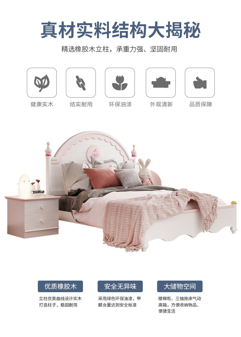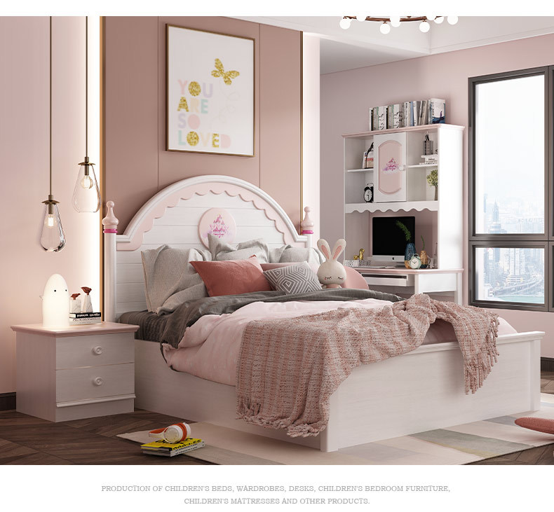 兒童家具 現(xiàn)代簡約粉色女孩女生公主床框架單人床