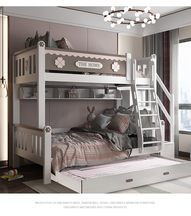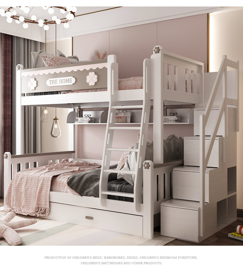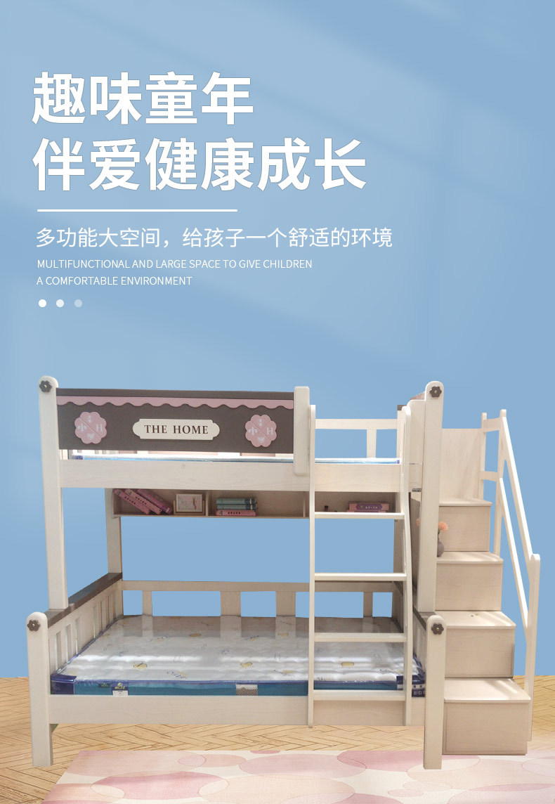 • 兒童家具 全實木上下床雙層床多功能兒童床高低子母床;雙層床:4654元起,實木拖床:884元,實木書架:364元,實木梯柜:2184元