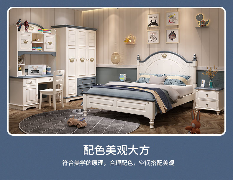 • 兒童家具 男孩女孩兒童房家具床頭儲物1.5m實木床:1794元;配套床頭柜:494元;1米直角書桌:2054元;1.2米直角書桌:2184元;轉(zhuǎn)角書桌:3444元;3門衣柜:2574元