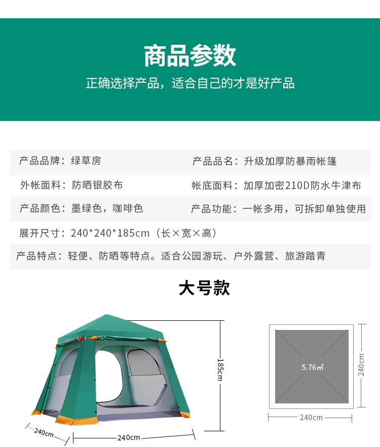 概述:綠草房帳篷戶外3-4人野營(yíng)加厚液壓全自動(dòng)4-6人防暴雨雙層野外露營(yíng);貨號(hào):LCF-012;風(fēng)格功能:登山,垂釣,野餐;搭建情況:免搭建速開(kāi)......