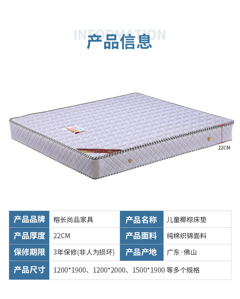 • 兒童家具 環(huán)保配套床墊彈簧墊天然環(huán)保椰棕墊白色彈簧床墊  884元起