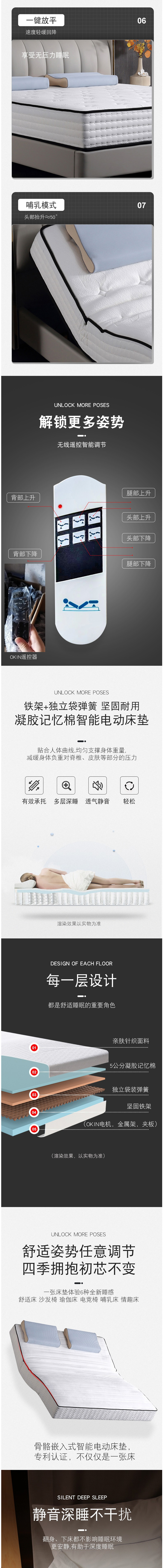 > 簡約家具 電動升降智能床墊凝膠記憶棉獨(dú)立袋彈簧床墊