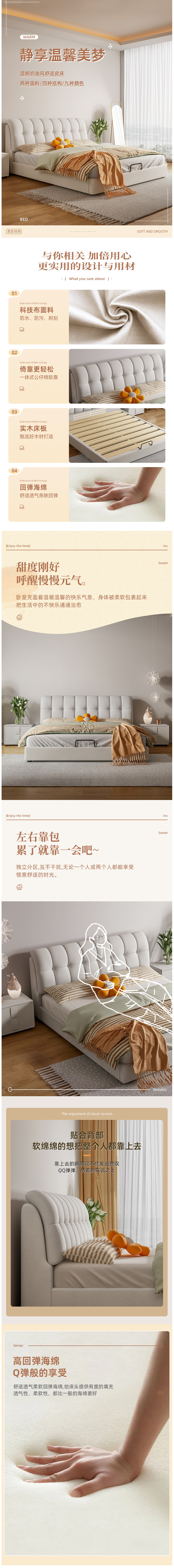 • 簡約家具 現(xiàn)代簡約儲物婚床輕奢意式軟床 主臥真皮床  683元起