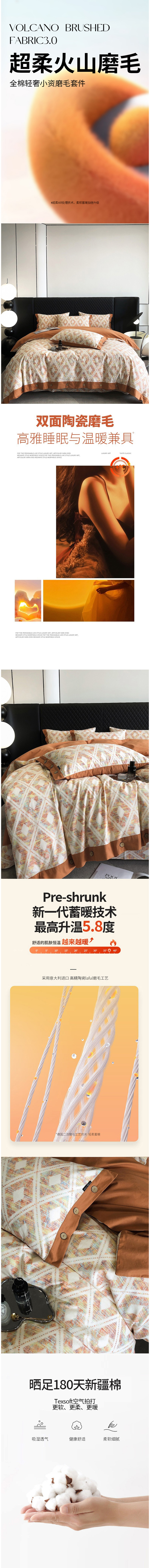 • 家居家紡 全棉超柔火山磨毛秋冬保暖紐扣款印花套件 621元2套起