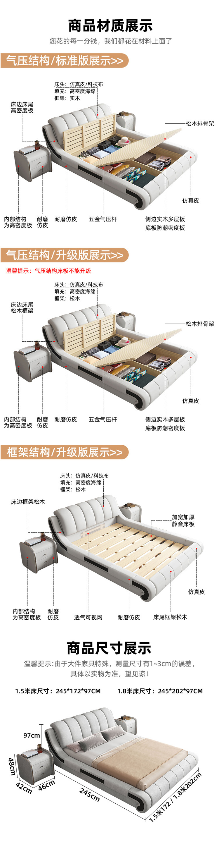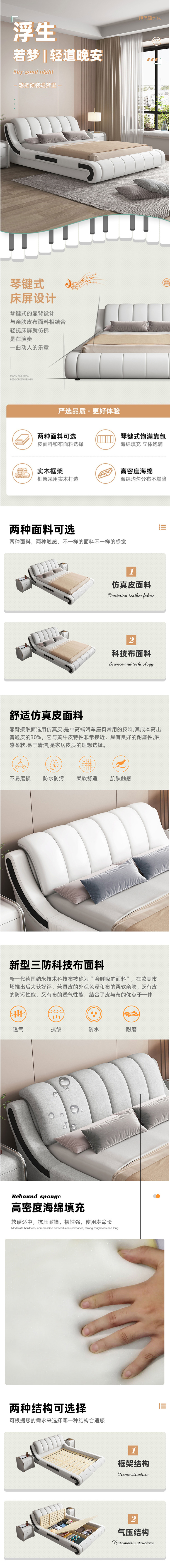 簡約家具 現(xiàn)代簡約皮藝科技布?xì)鈮捍?布藝軟床 1729元起